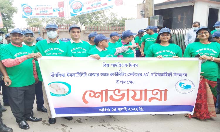 এর আগে বিশ্ব আইভিএফ দিবস ও দীপশিখা ইনফার্টিলিটি কেয়ার অ্যান্ড কাউন্সিলিং সেন্টারের ৪র্থ প্রতিষ্ঠাবার্ষিকী উপলক্ষে এক শোভাযাত্রা বের করা হয়।