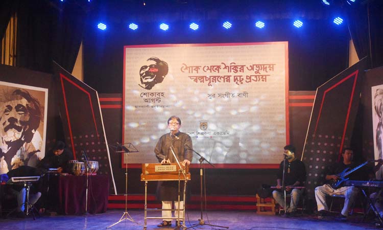 বাংলাদেশ শিল্পকলা একাডেমির আয়োজনে শোকাবহ আগষ্ট উপলক্ষে মাসব্যাপী ‘শোক থেকে শক্তির অভ্যুদয়, সপ্নপূরণের দৃড়প্রত্যয়’ শিরোনামে ২য় দিনের অনুষ্ঠান আজ একাডেমির জাতীয় সংগীত ও নৃত্যকলা কেন্দ্র মিলনায়তনে অনুষ্ঠিত হয়।