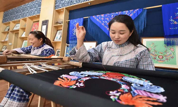 চীনে হস্তশিল্পের অভাবনীয় সমৃদ্ধি লক্ষ্য করা যাচ্ছে।লাল, সবুজ, নীল দ্রুত সেলাই করে রঙিন সূচিকর্ম করা হচ্ছে এবং সূচিকর্মের পদ্ধতিগুলি পরিবর্তনশীল। সূচিকর্মের প্যাটার্নে ড্রাগন ও ফিনিক্স, মাছ ও পাখি ইত্যাদি দেখা যায়।