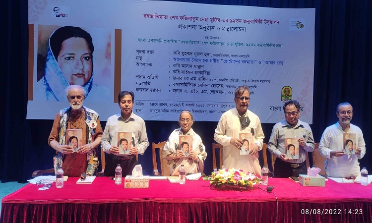 প্রতিমন্ত্রী আজ দুপুরে রাজধানীর বাংলা একাডেমির আবদুল করিম সাহিত্যবিশারদ মিলনায়তনে মহীয়সী নারী বঙ্গমাতা শেখ ফজিলাতুন নেছা মুজিব এঁর ৯২তম জন্মবার্ষিকী উপলক্ষ্যে বাংলা একাডেমি আয়োজিত প্রকাশনা ও গ্রন্থালোচনা অনুষ্ঠানে প্রধান অতিথির বক্তব্যে এসব কথা বলেন।