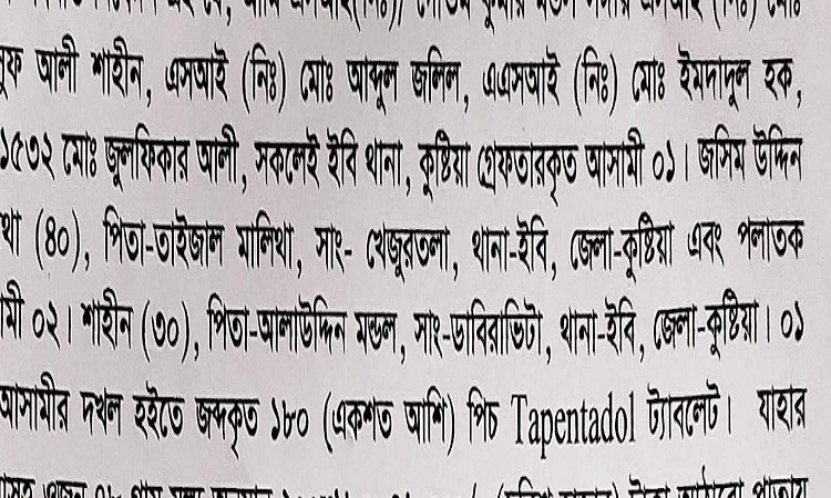 জানা গেছে, গোপন তথ্যের ভিত্তিতে ট্যাবলেটের কথা জানতে পেরে অভিযান চালায় পুলিশ। ইবি থানা অফিসার ইনচার্জ আননুর যায়েদের নির্দেশনায় অভিযান চালায় এস আই ইউসুফ আলী শাহীন এর নেতৃত্বে এস আই গৌতম, এস আই জলিল।