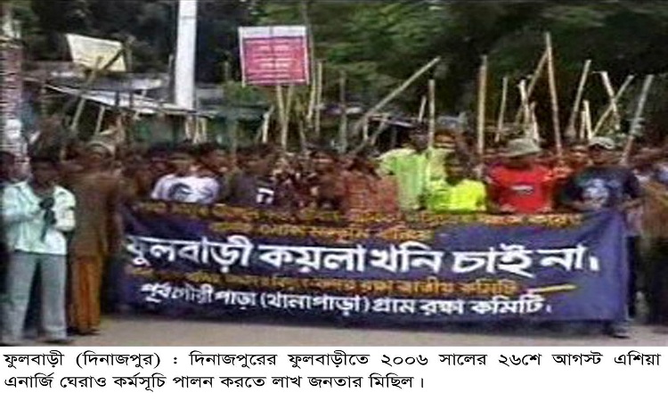 ২০০৬ সালের ২৬ আগষ্ট উন্মুক্ত পদ্ধতিতে খনি বাস্তবায়নের প্রস্তাবকারি এশিয়া এনার্জি নামক একটি বহুজাতিক কোম্পানীর ফুলবাড়ীস্থ অফিস ঘেরাও কর্মসুচি পালন করতে গেলে, নিরাপত্তার দায়িত্বে থাকা আইন শৃঙ্খলা বাহিনী মিছিলের উপর টিয়ারশেল ও গুলিবর্ষন করে। এতে বিশ্ববিদ্যালয়ের অধ্যায়নরত ছাত্র তরিকুল ইসলামসহ আমিন ও সালেকিন নামে তিন জন গুলিবিদ্ধ হয়ে নিহত হয়। একই ঘটনায় আহত হয় বেশ কিছু মিছিলকারি। এদের মধ্যে বাবলু রায় নামে একজন চিরতরে পঙ্গুত্ব বরণ করেন। এখনও সেই গুলির ক্ষত বহন করছে অনেকে।