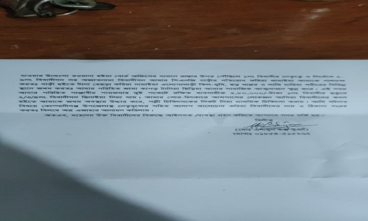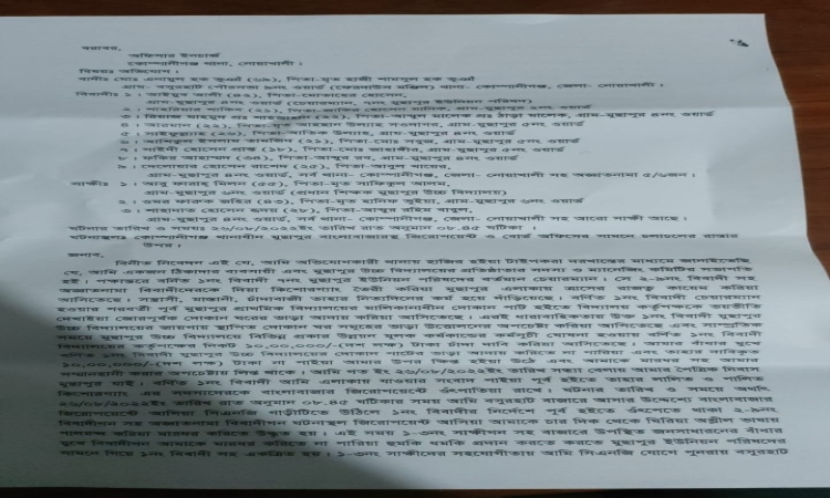 একপর্যায়ে ইউনিয়ন পরিষদের সামনের সড়কে সিএনজি থেকে নামিয়ে আইয়ুব আলী চেয়ারম্যানের নেতৃত্বে ও নির্দেশে পুনরায় তাকে গাড়ির গতিরোধ করে গালমন্দ করে গাড়ি থেকে টেনে হিঁচড়ে নামিয়ে এলোপাতাড়ি কিল,ঘুষি,চড়,থাপ্পড় ও লাথি মেরে শরীরের বিভিন্ন স্থানে আঘাত করে আমার পরনে থাকা পাঞ্জাবী-পায়জামার পকেট ছিঁড়ে ২লক্ষ ৮০ হাজার টাকা ছিনিয়ে নেয়।