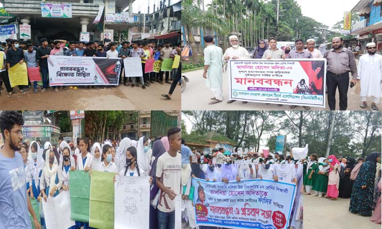 নোয়াখালীর জেলা শহর মাইজদীর লক্ষীনারায়ণপুরে স্কুল ছাত্রী তাসমিয়া হোসেন অদিতা হত্যার প্রতিবাদ ও বিচার চেয়ে মানববন্ধন করেছে বিভিন্ন স্কুল-কলেজের শিক্ষার্থীরা। অষ্টম শ্রেণির স্কুল ছাত্রী অদিতা হত্যার প্রতিবাদে উত্তাল হয়ে উঠেছে নোয়াখালীর শিক্ষাঙ্গন ও রাজপথ।