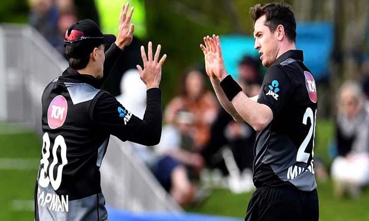 ১৭তম ওভারে এসে জোড়া তুলে নেন মোহাম্মদ সাইফউদ্দিন। ওভারের প্রথম বলেই তাকে মারতে গিয়ে বাউন্ডারিতে শান্তর হাতে ধরা পড়েন কনওয়ে। ৪০ বলে ৫ চার আর ৩ ছক্কায় ৬৪ রান করেন কিউই ওপেনার। দুই বল পর সাইফউদ্দিন দারুণ এক ডেলিভারিতে স্টাম্প ভাঙেন নতুন ব্যাটার মার্ক চ্যাপম্যানের (২)।