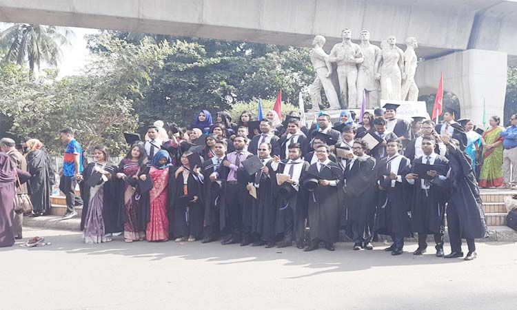 এর আগে ১১টা ৫৫ মিনিটে রাষ্ট্রপতির নেতৃত্বে বিশ্ববিদ্যালয়ের সিনেট, সিন্ডিকেট ও অ্যাকাডেমিক কাউন্সিলের সদস্য, বিশ্ববিদ্যালয়ের শিক্ষক এবং কনস্টিট্যুয়েন্ট কলেজের অধ্যক্ষ/ইনস্টিটিউটের পরিচালকদের অংশগ্রহণে সমাবর্তন শোভাযাত্রা কার্জন হল থেকে শুরু হয়। এরপর জাতীয় সংগীত পরিবেশন করা হয়।