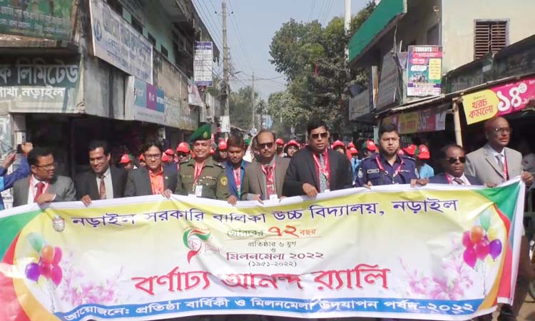 নড়াইল সরকারি বালিকা উচ্চ বিদ্যালয় প্রতিষ্ঠার ৬ যুগপূর্তি উপলক্ষ্যে ২ দিন ব্যাপি মিলন মেলা’র উদ্বোধন হয়েছে। এ উপলক্ষ্যে বর্ণাঢ্য আনন্দ র‌্যালি, আলোচনা সভা ও মনোজ্ঞ সাংস্কৃতিক অনুষ্ঠান হয়েছে। শনিবার (২৪ ডিসেম্বর) সকালে জেলা প্রশাসক মোহাম্মদ হাবিবুর রহমান বীরশ্রেষ্ঠ নুর মোহম্মদ ষ্টেডিয়ামে প্রধান অতিথি হিসেব এসব কর্মসূচীর উদ্বোধন করেন।