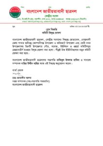 শনিবার (৫ অক্টোবর) বিকেলে ছাত্রদলের কেন্দ্রীয় কমিটির দফতর সম্পাদক মো.জাহাঙ্গীর আলম স্বাক্ষরিত এক প্রেস বিজ্ঞপ্তিতে এ তথ্য জানানো হয়।