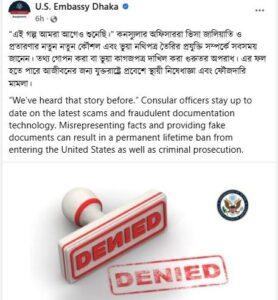 ভিসাপ্রার্থীদের কঠোর বার্তা ঢাকার মার্কিন দূতাবাসের