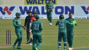 দুই ওপেনারের জুটি থেকে আসে ৩২ রান। ৬.৬ ওভারের সময় বাবর আজমকে ১৯ রানে ফিরিয়ে জুটি ভাঙেন লেগ স্পিনার আমিনুল ইসলাম বিপ্লব। এরপর থিতু হওয়া রিজওয়ানকে ৪০ (৪৩) রানে বোল্ড করে ফেরান অভিষিক্ত শহিদুল ইসলাম।